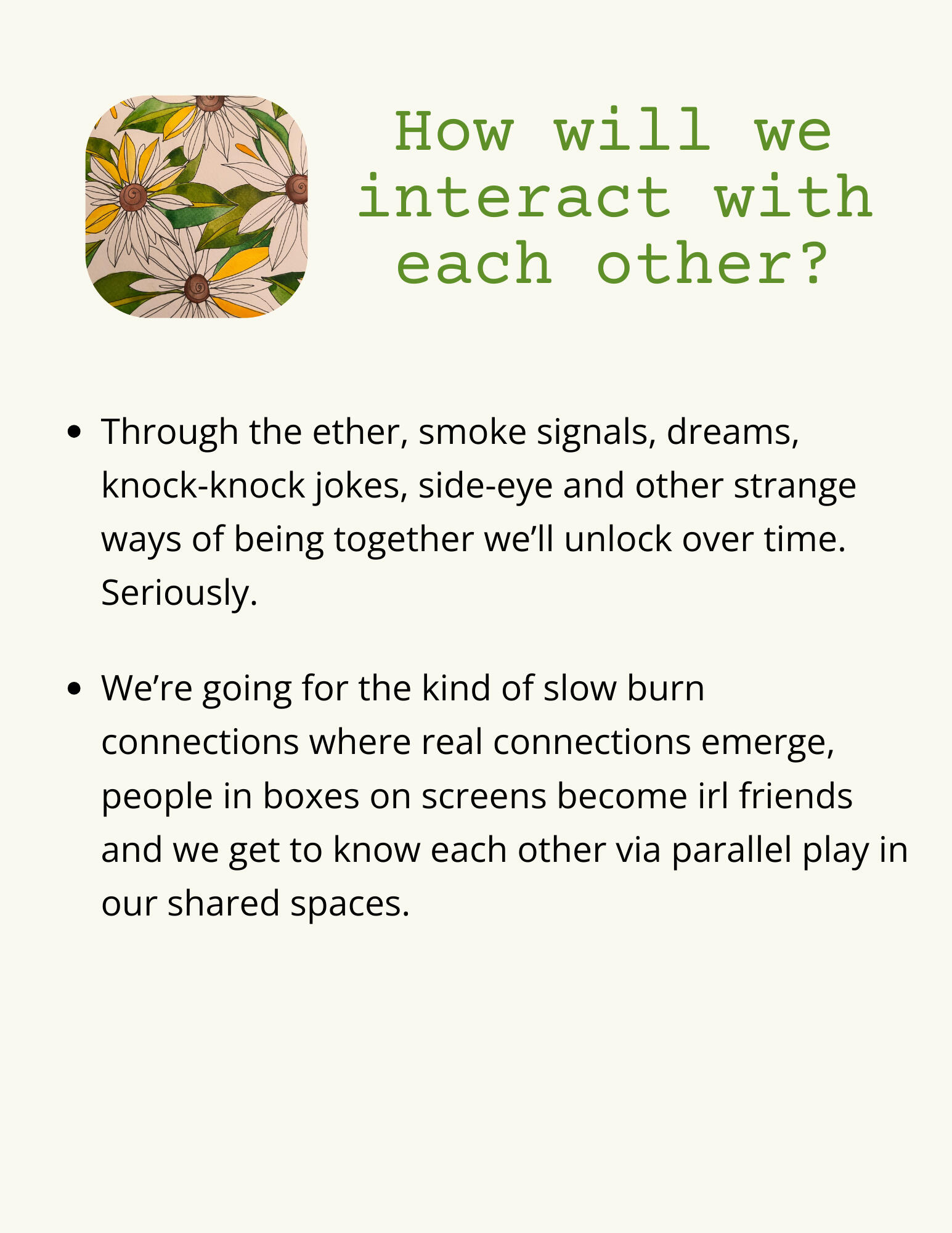 We can sense will be a year like no other — and when times get rough, when it feels hard to know where you're needed and what's next, then it's time to gather up and get real.Plus, everyone knows the weirdos are the ones who make it all the way to the end.We're looking for dreamers, lovers, freaks, hopers + worriers, bed rotters + world travelers, and anyone who feels a call to find a different, better way into the future. Could one of them be you?